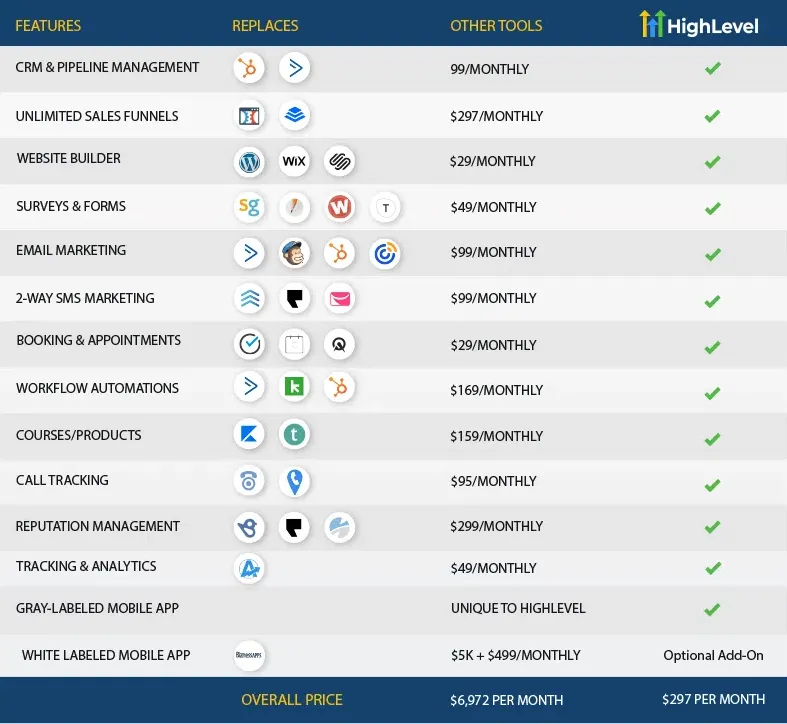 Snapshots of Whitelabeled workflows, websites as well as funnels are also included so that you can focus on getting your first client as quickly as possible -$150